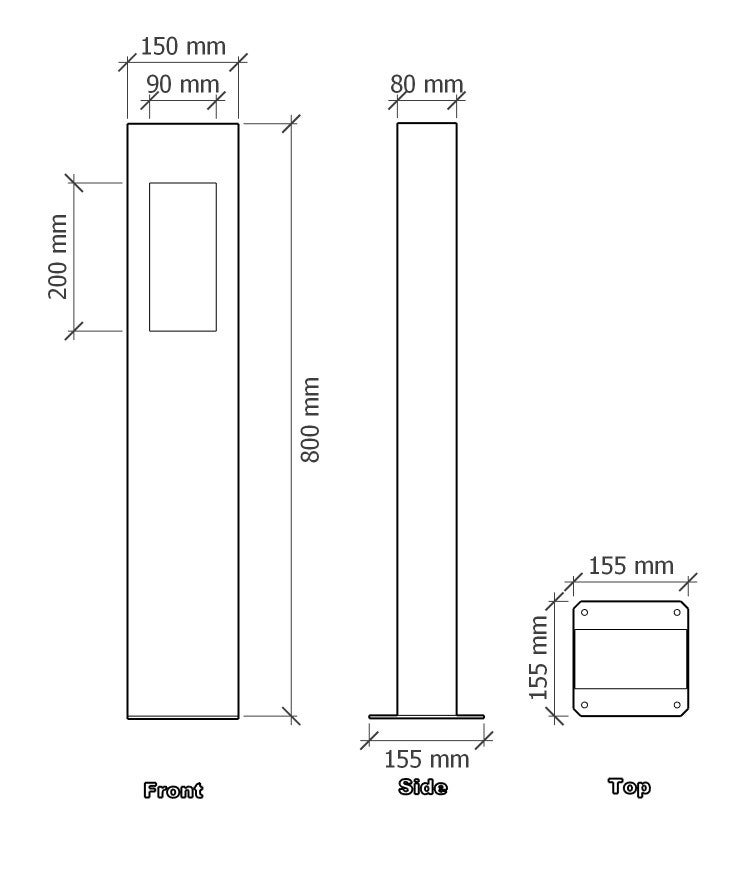 Afmetingen: 150*80*H.800mm.